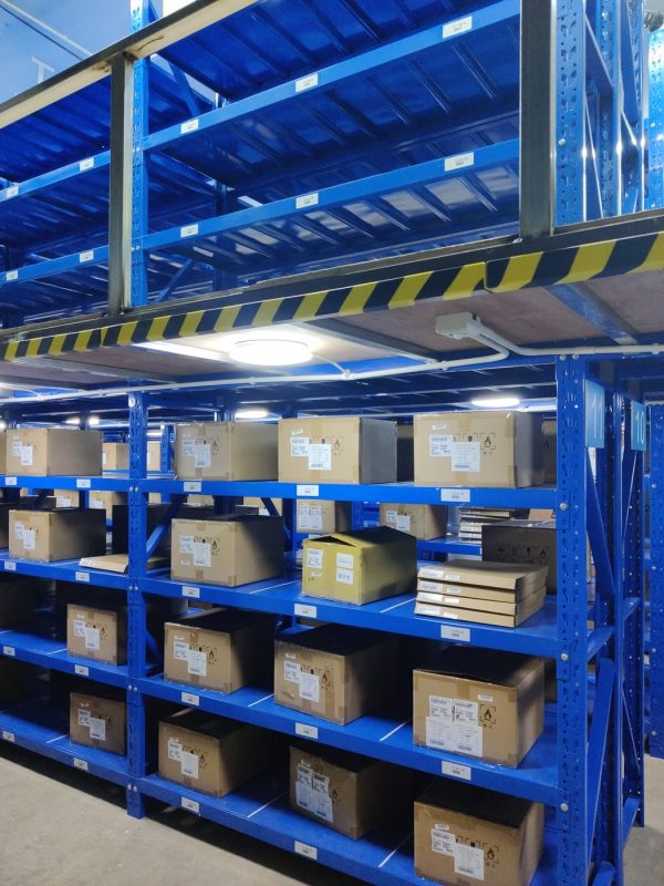 Space for Server hardware was included and even gaps between weight bearing components was purposefully used as pallet storage. Almost no centimeter remained unused in this extremely compact and efficient solution.