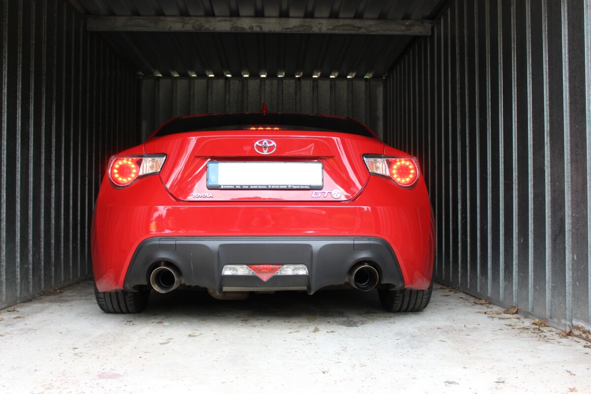 On the first generation Subaru BRZ / Toyota 86 / Scion FR-S, the mandatory third brake light is mounted inside the cabin on top of the rear seat liner. Placements like these are not unusual. However, what’s unusual is its positioning. The manufacturer decided to put said brake light on a sort of stilts. What has been observed:
