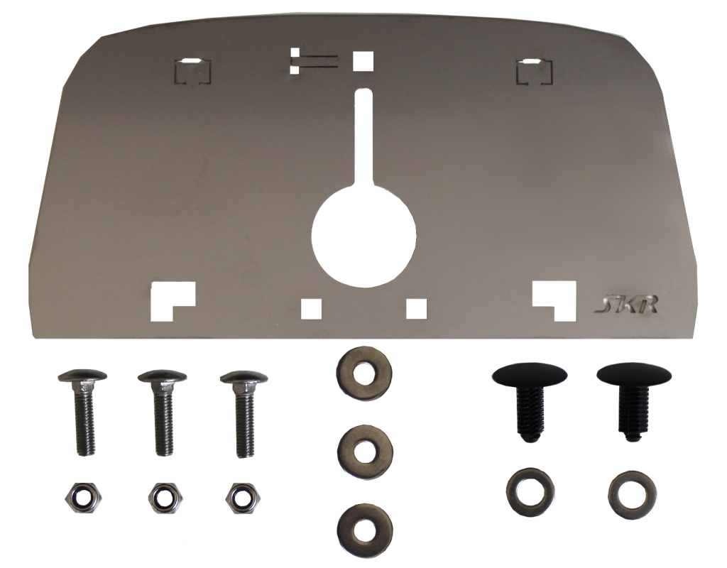 A precision laser cut carrier plate that slots seamlessly into the top half of the brake light housing, providing a stable base for mounting the third brake light directly on the trunk liner.